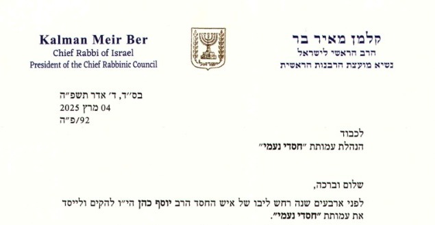 Chasdei Naomi is currently celebrating the thirtieth anniversary of its establishment. Over the years of its existence the organization has aided tens of thousands of needy families, hundreds of thousands of children from disadvantaged homes, and countless brides and grooms who, without such assistance, would have been unable to wed in a spirit of festivity.